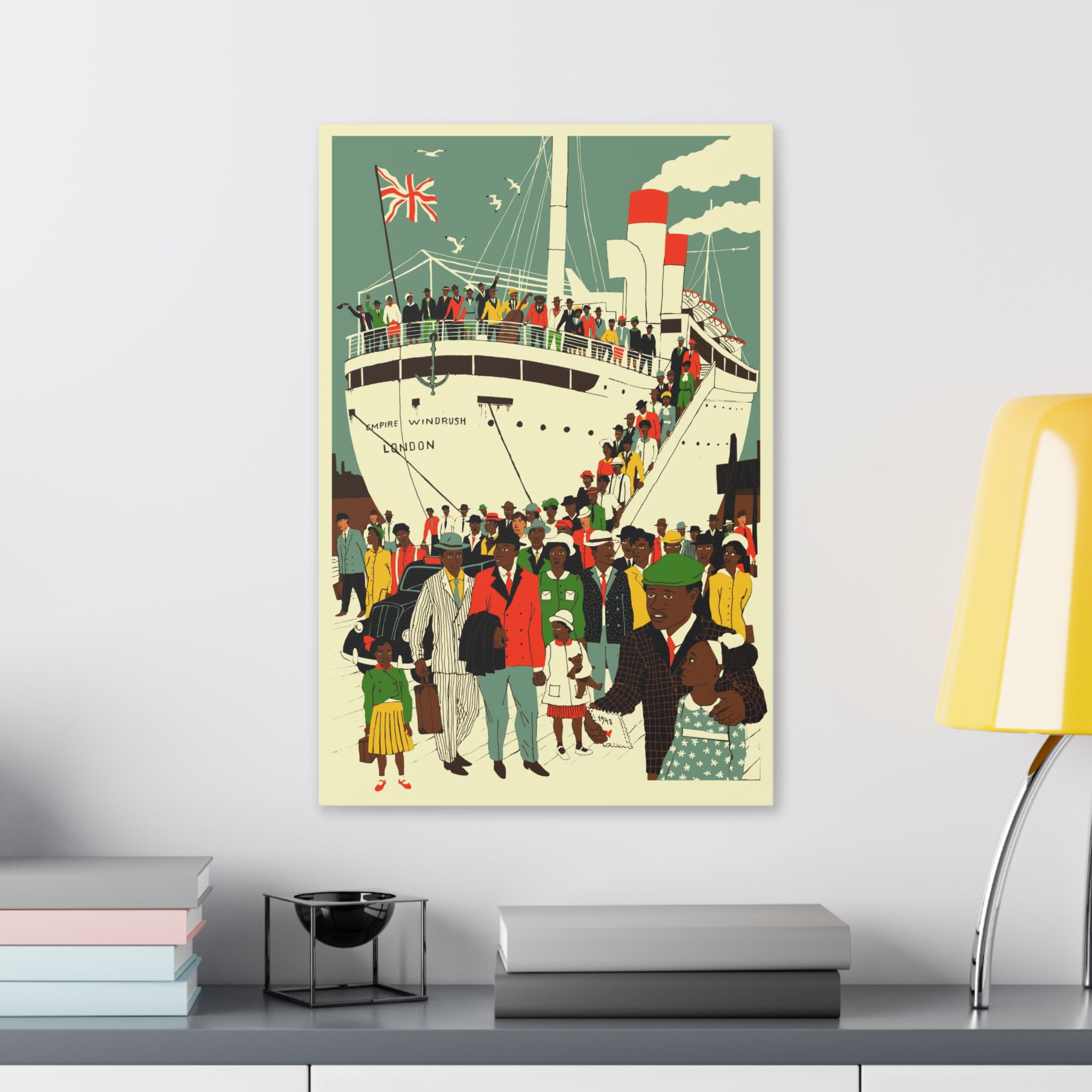Eliza Southwood is a talented artist and illustrator known for her vibrant screenprints and mixed media works. One of her notable pieces, “London is the Place for Me”, was inspired by the arrival of the Empire Windrush at Tilbury Docks and the iconic calypso song by Lord Kitchener. This artwork celebrates the optimism and diversity of the Windrush generation while addressing the challenges they faced. It won the Gold Prize at the Poster Prize for Illustration in 2019
